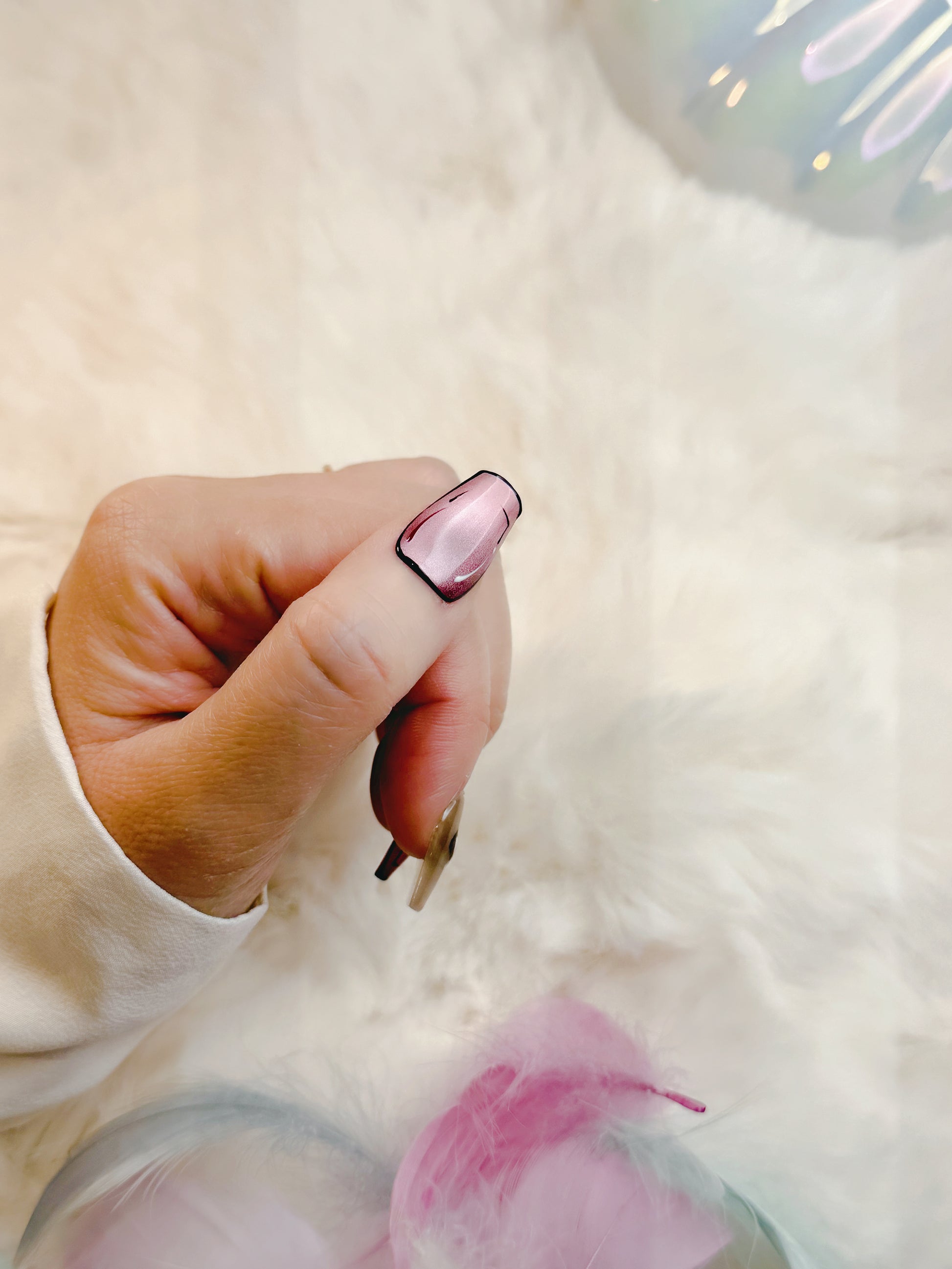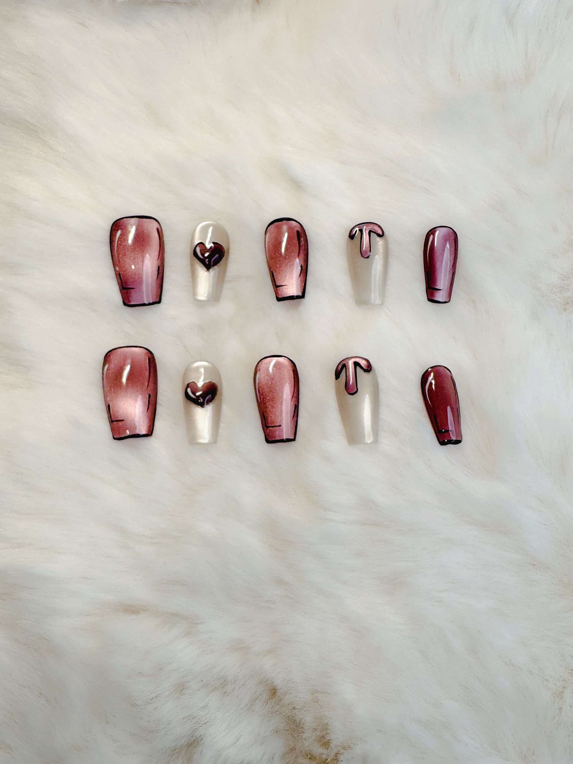 Fall in love with Blush Chrome Romance. This playful yet chic set blends metallic pink chrome with sleek black outlines and sweet heart accents. A dreamy balance of edgy and romantic, they’re perfect for date nights, celebrations, or everyday glam with a twist.