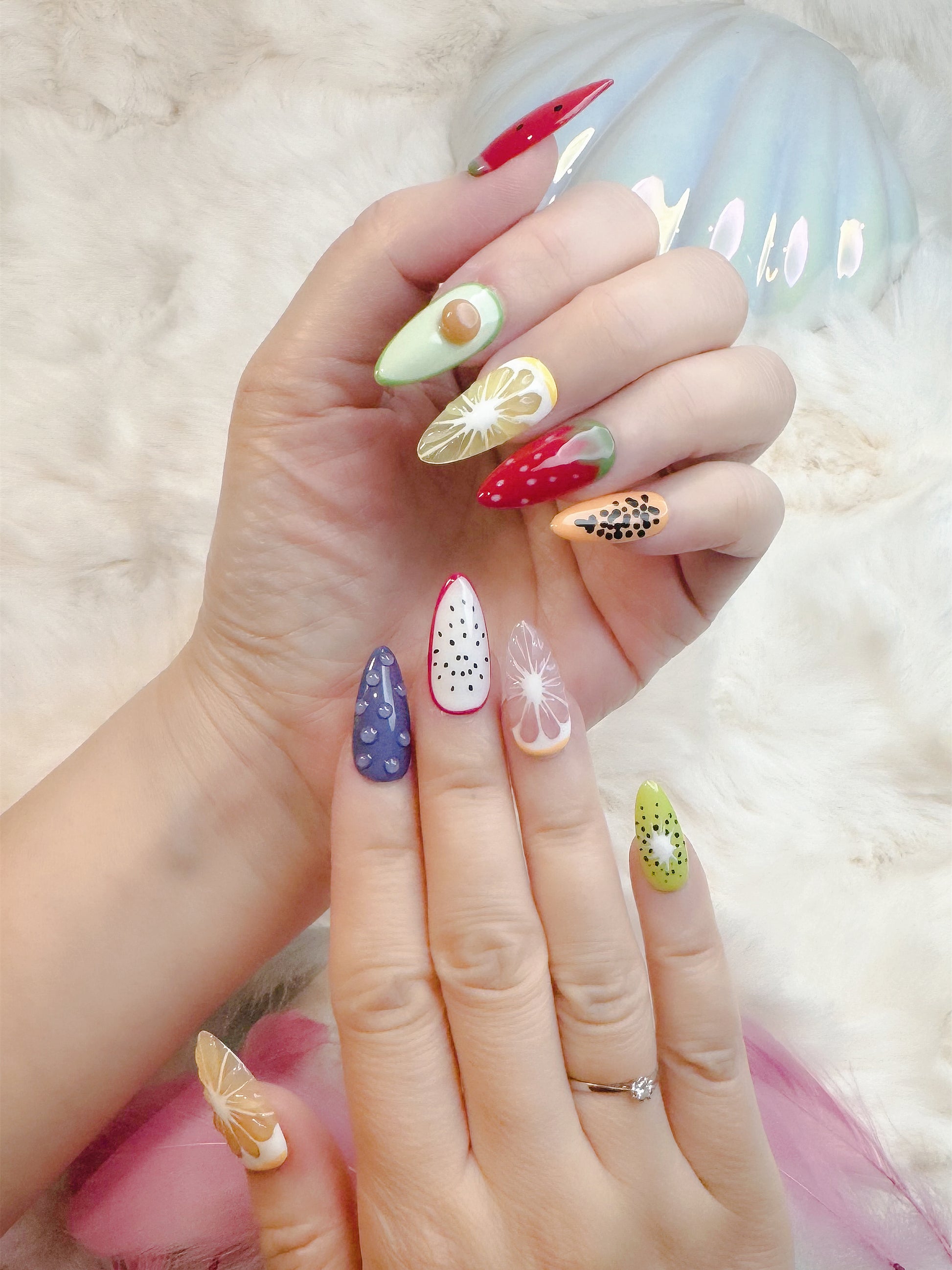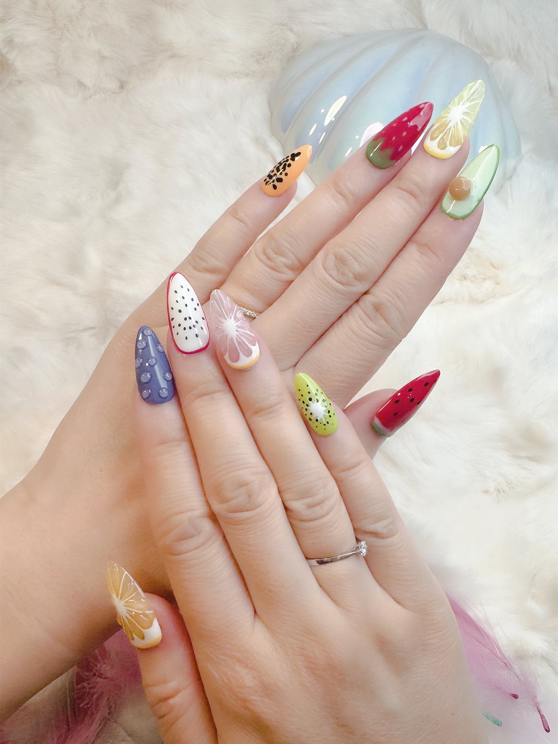 Bring summer to your fingertips with Fruit Fiesta! This vibrant set features a mix of hand-painted fruit designs — from zesty lemons to juicy watermelons, sweet strawberries, kiwi, and more. Each nail is a mini masterpiece, bursting with playful detail and color.